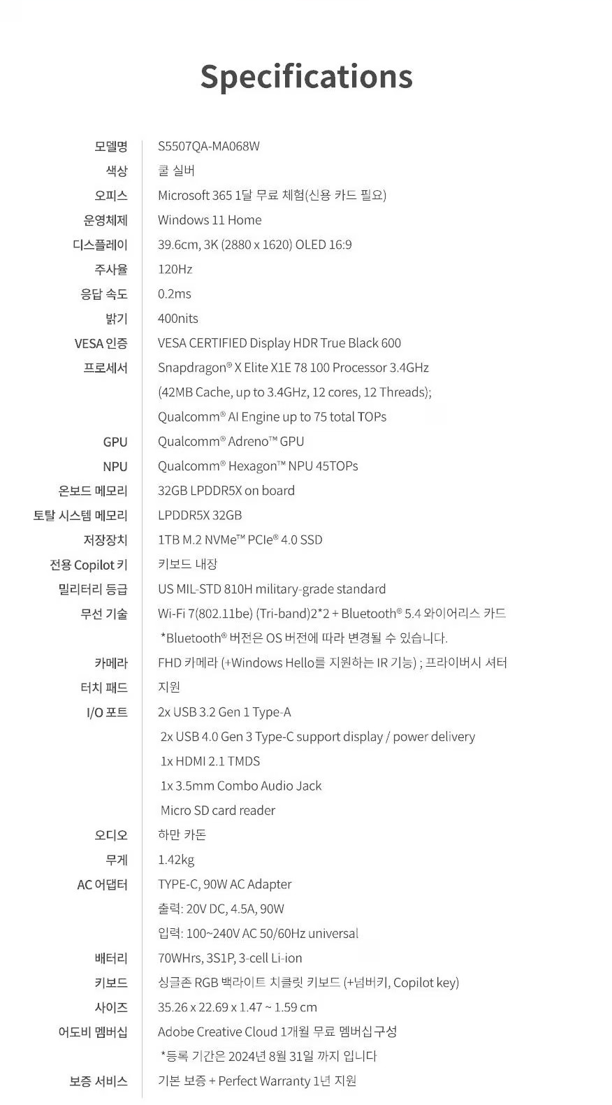 HOME > 외산브랜드 > ASUS > ASUS 비보북 S 15 S5507QA-MA068W (SSD 1TB)
